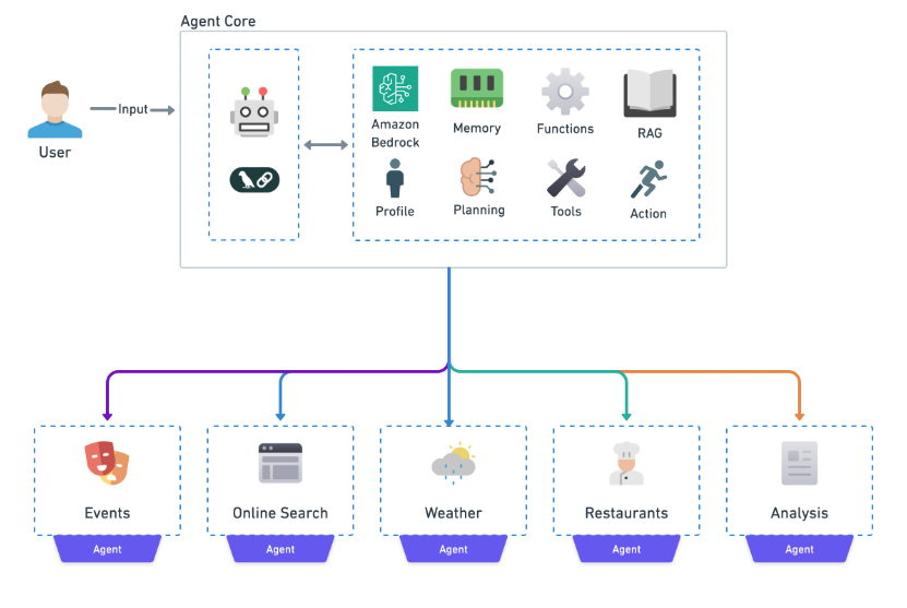 - Users interact with agents via conversational interfaces