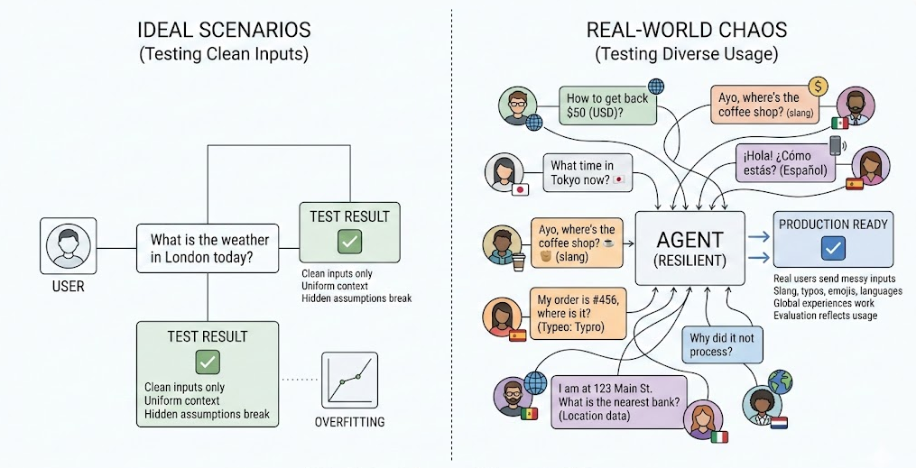 Agents often fail because they were tested only on clean, ideal examples.
