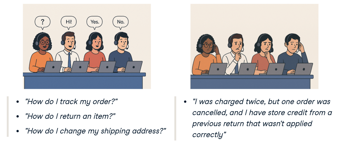 Imagine two customer support teams at an online store.