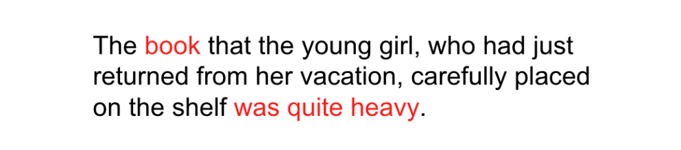 Some sentences have information spread far apart, which make connections harder to track. Models need to link the distant words.
