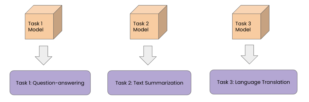 Traditional models often focus on one task at a time, while LLMs can handle many tasks together.