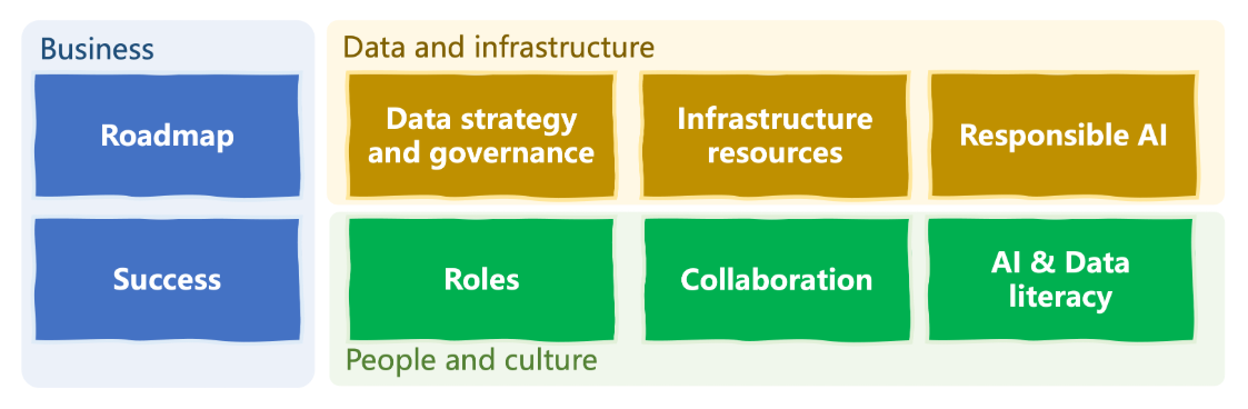 To successfully implement AI, organizations need key building blocks across strategy, technology, and people. A strong AI culture combines these elements to create sustainable business value while maintaining ethical and responsible practices.