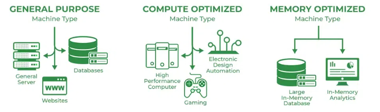 This is useful when applications require very specific hardware or system configurations. Compute Engine has three machine types: