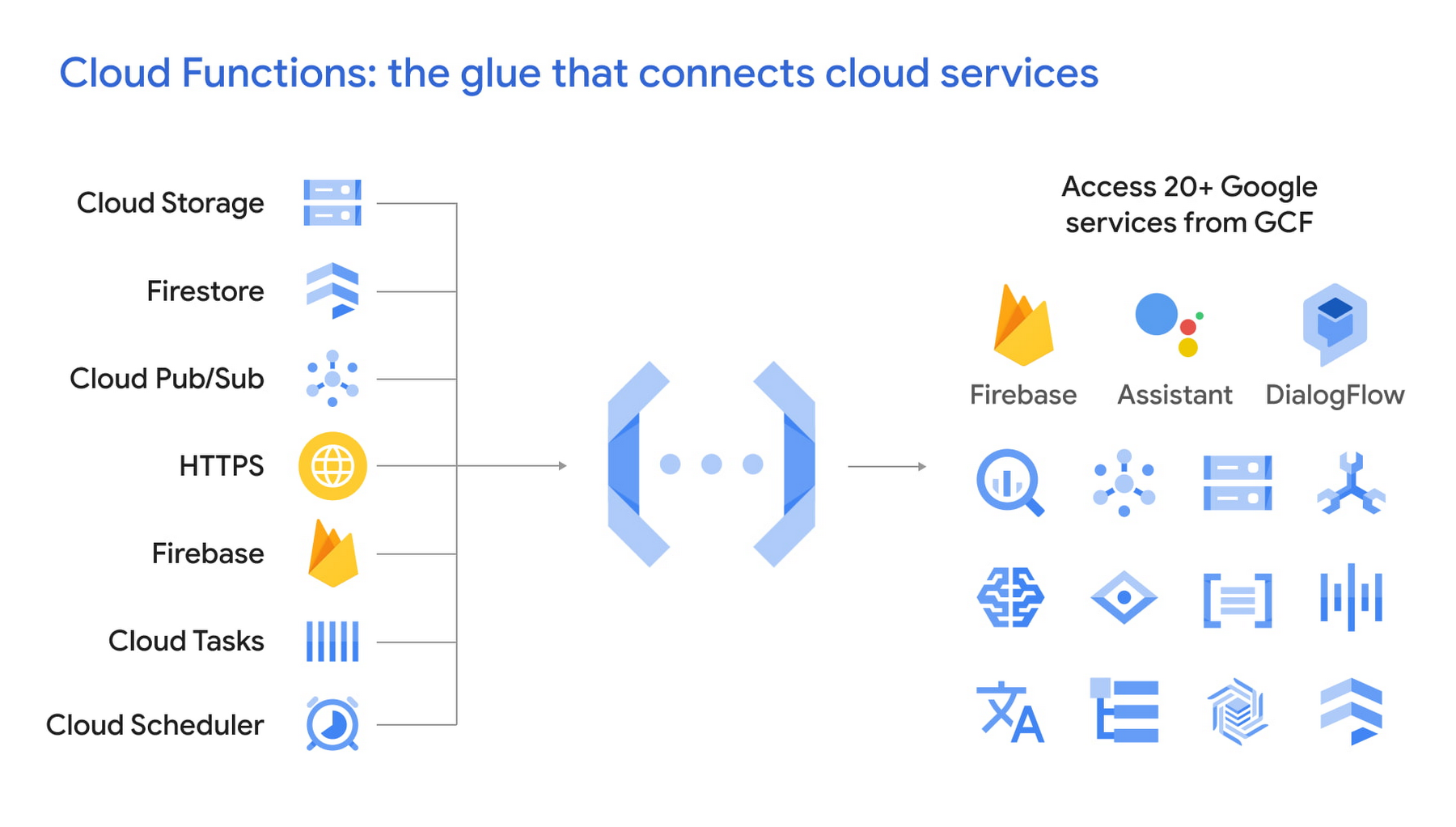 A common use of Cloud Functions is to react when something is added to Cloud Storage. For example, it can make image thumbnails or check the tone of a text file. Other uses include: