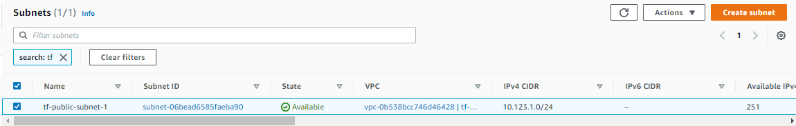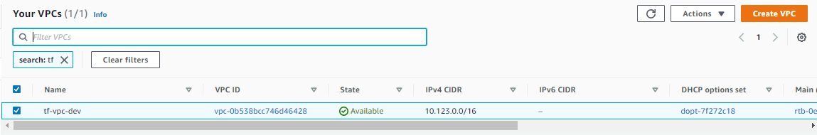 aws_vpc.tf-vpc: Creation complete after 15s [id=vpc-00203af585d54c4f0]