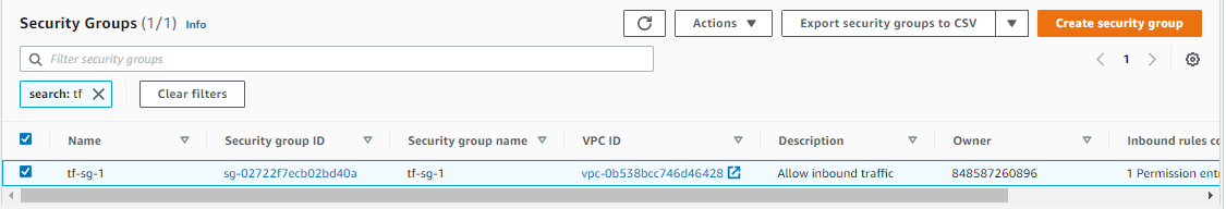 - VPC name "tf-vpc" after the aws_vpc