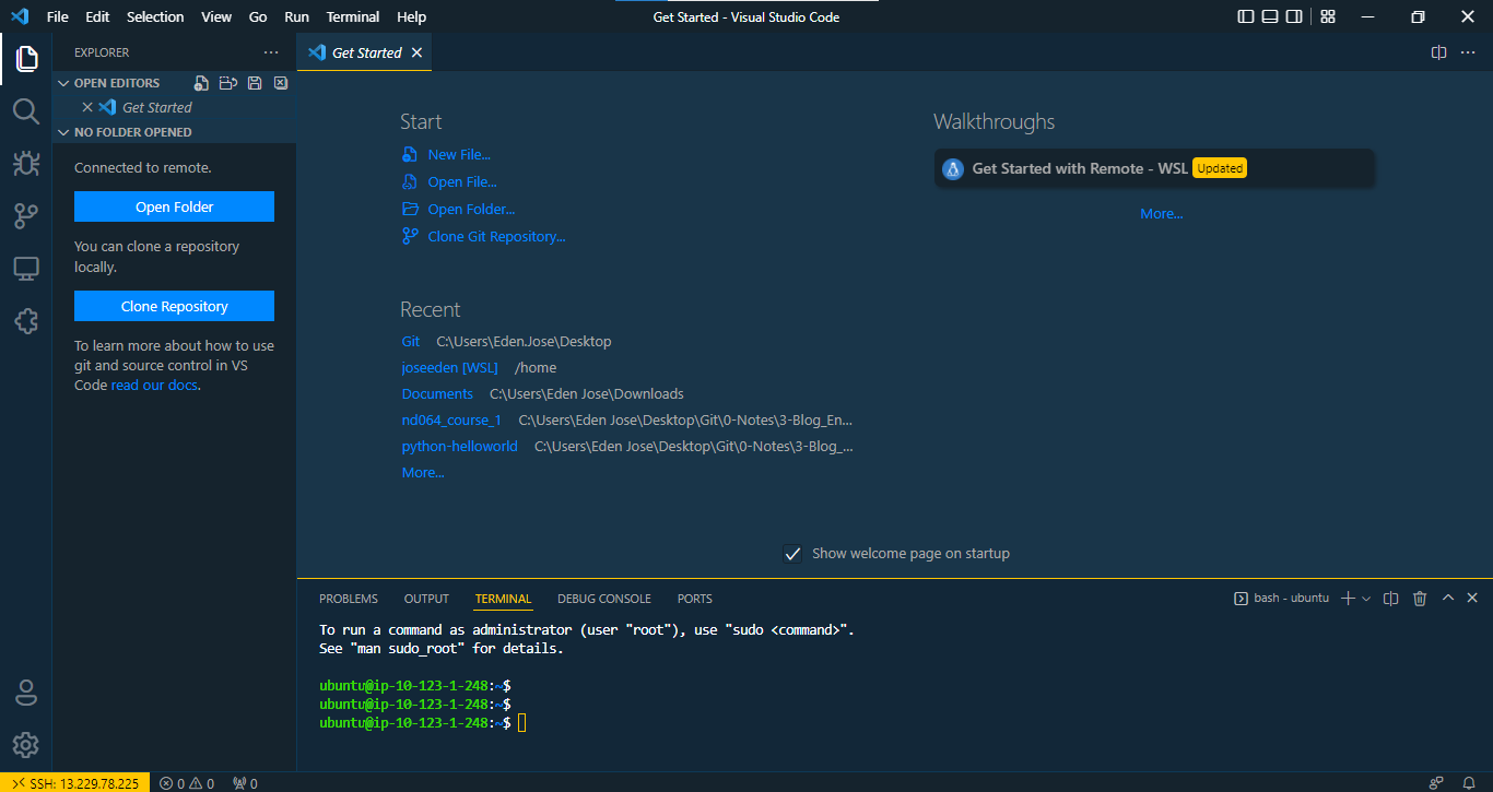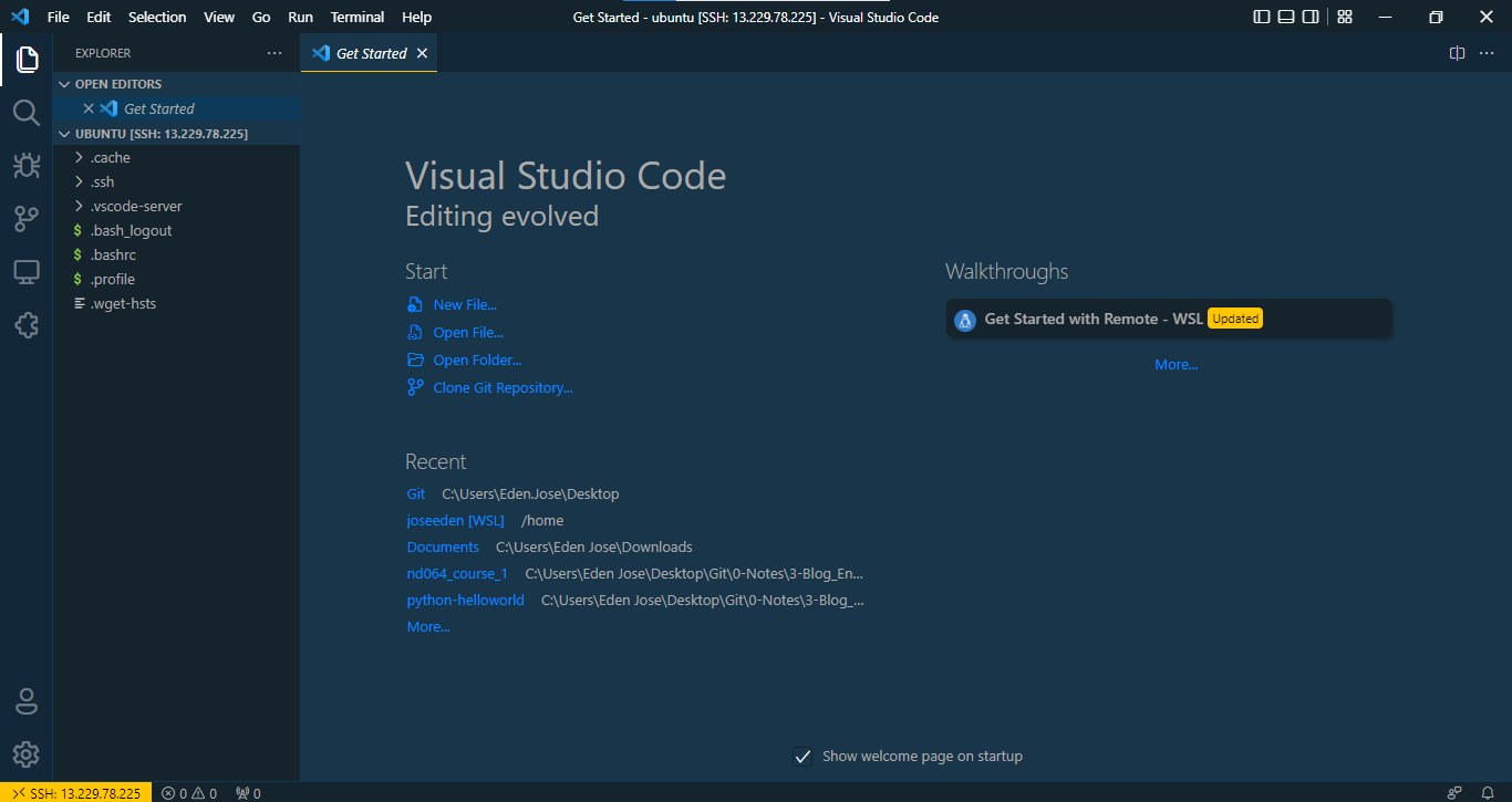 Open Remote-SSH in VSCode. You should see the IP of your instance. When you click the IP, it will open a new VSCode window.
