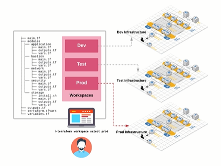 We can utilize workspaces to manage separate environments using the same set of configuration files.