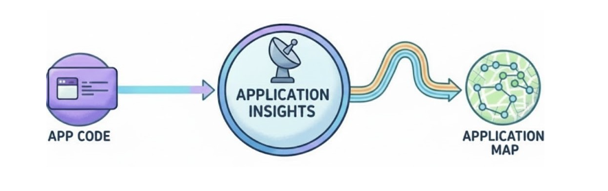 Application Map uses distributed tracing, which means every request that flows through your system leaves telemetry. Application Map stitches these traces into a dependency graph, no custom code needed.