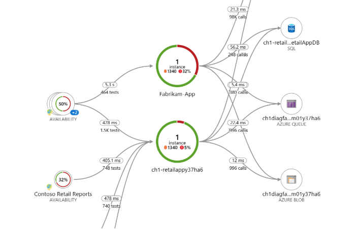 Application Map gives a live, visual view of your application and all the components it depends on.