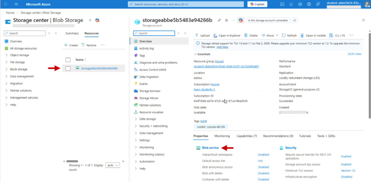 | Service SAS | Storage account key | Grants access to a single service like blobs, queues, or files | A ticket valid for accessing only the blob service |
