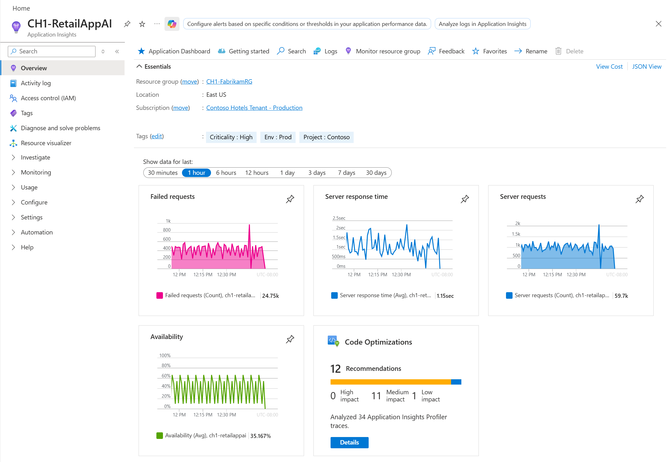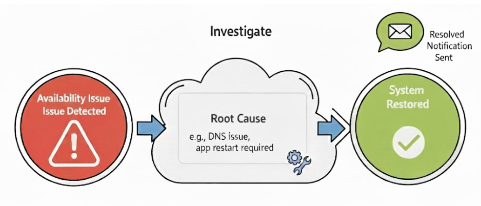 Application Insights helps you monitor your app in real time. It collects telemetry automatically and works across all platforms and languages. It can be used to track availability and trigger alerts to notify your team when something goes wrong.