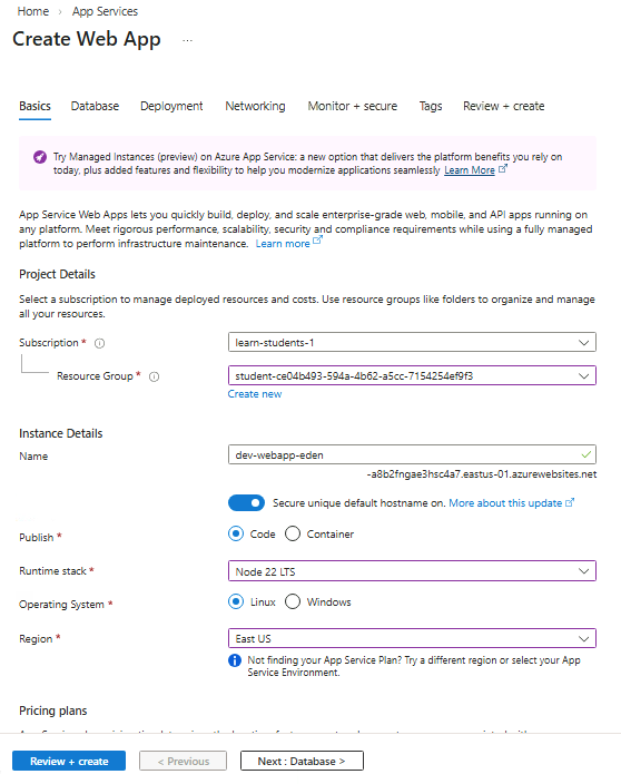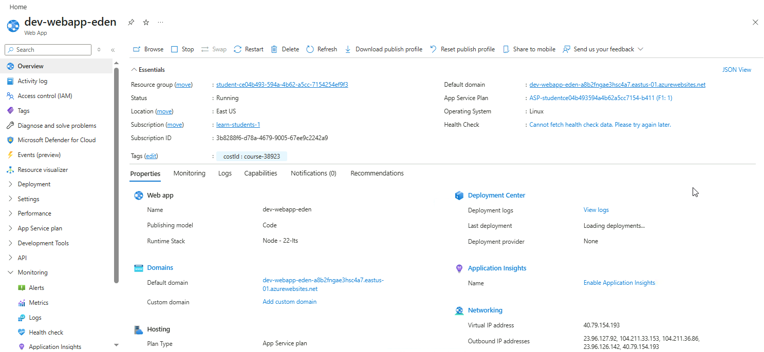 Once deployment completes, navigate to the newly created web app.