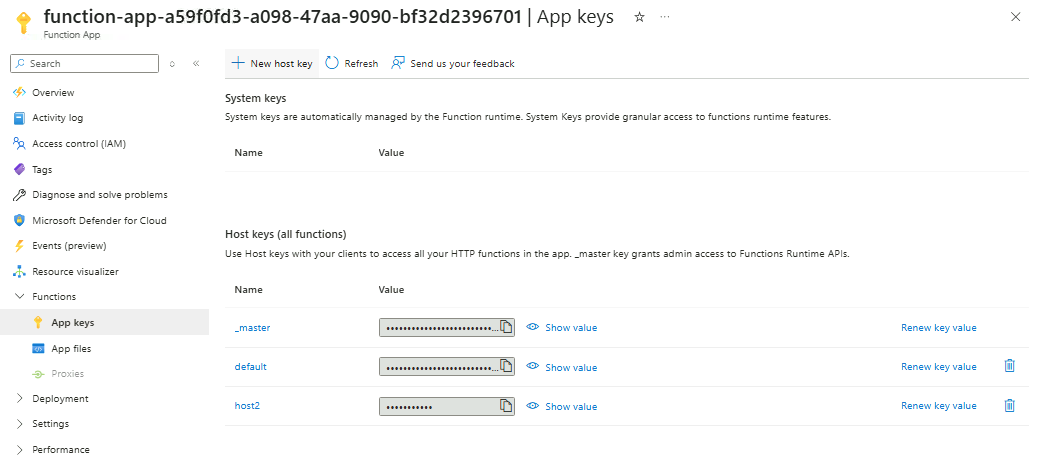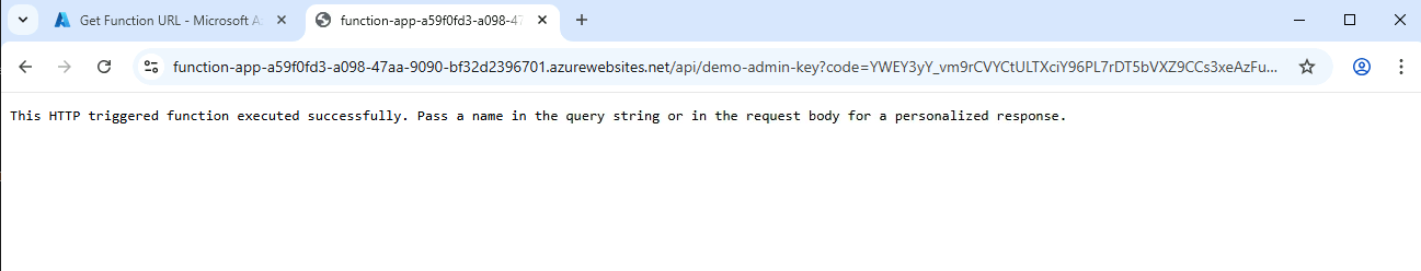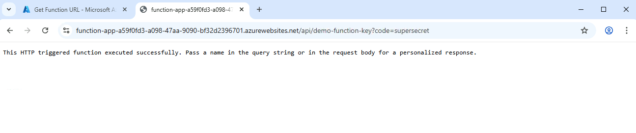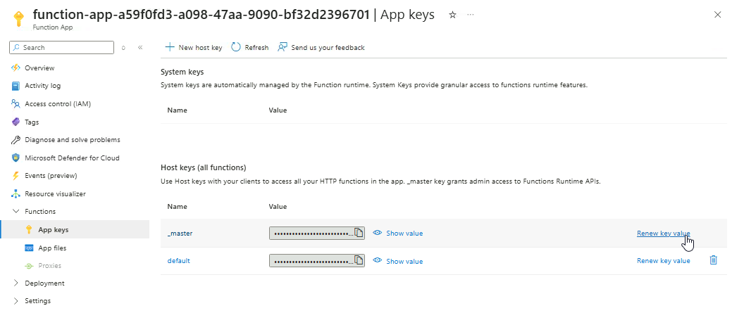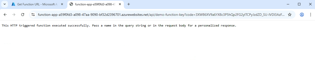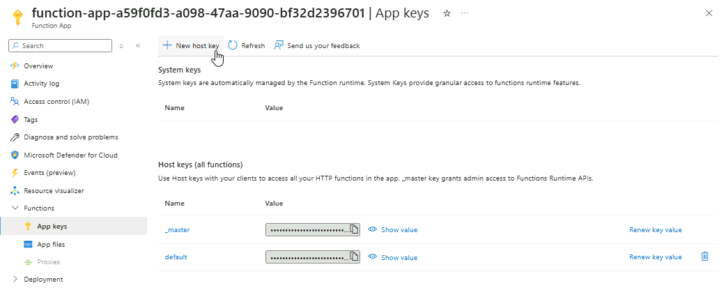Open the function ➔ Get function URL ➔ Copy the URL with the Function key label.