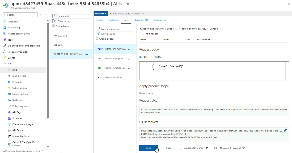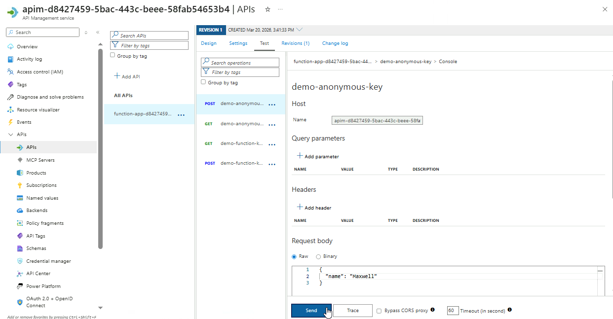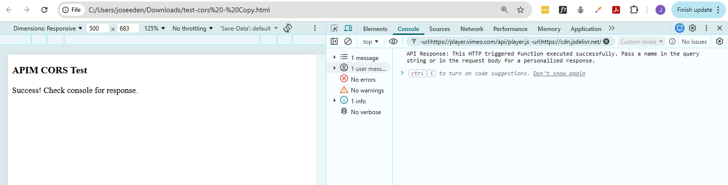 test-cors.htmlon your computer.Note: Make sure to set your APIM URL in