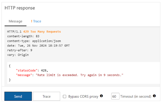"message": "Rate limit is exceeded. Try again in 9 seconds."
