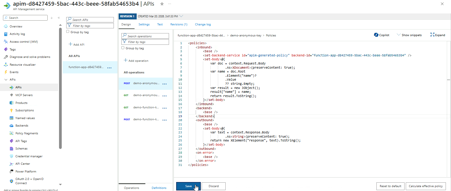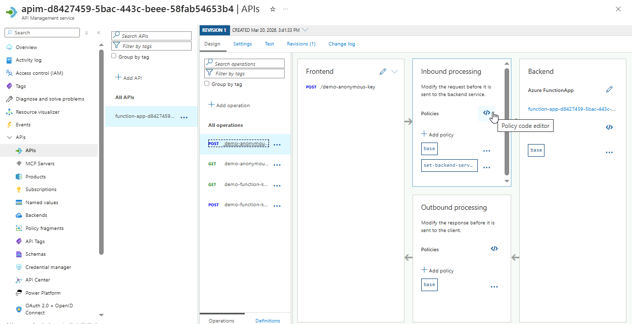 Proceed to APIs ➔ APIs ➔ Select the linked Function App