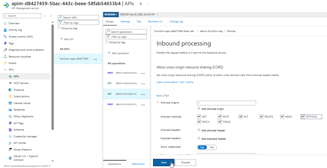 $APIM_URL;echoTo confirm CORS is working, check for this header in the response: