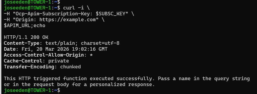 cURLto send aGETrequest to your APIM endpoint, including theOriginheader:curl -i \