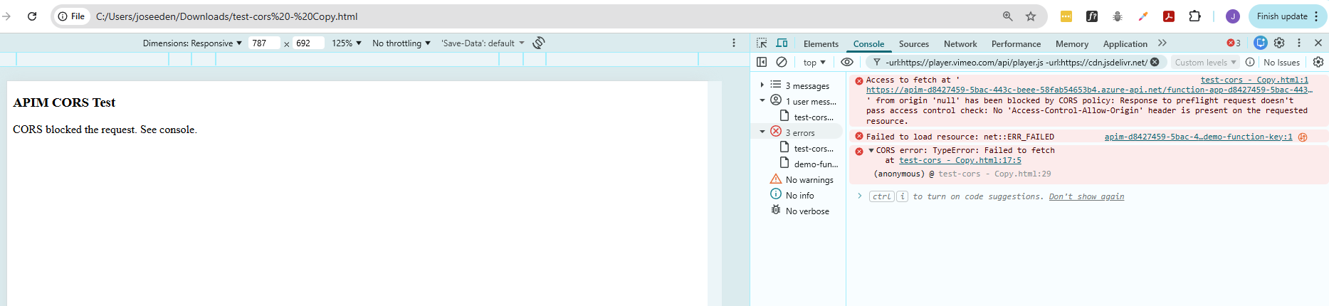 Access to fetch at 'https://YOUR-APIM-URL' from origin 'null' has been blocked by CORS policy: Response to preflight request doesn't pass access control check: No 'Access-Control-Allow-Origin' header is present on the requested resource.