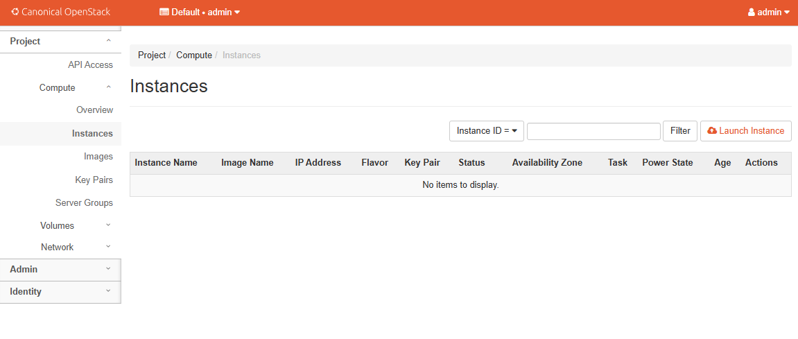 The Instances page will be empty at first. This confirms no VMs are running yet.