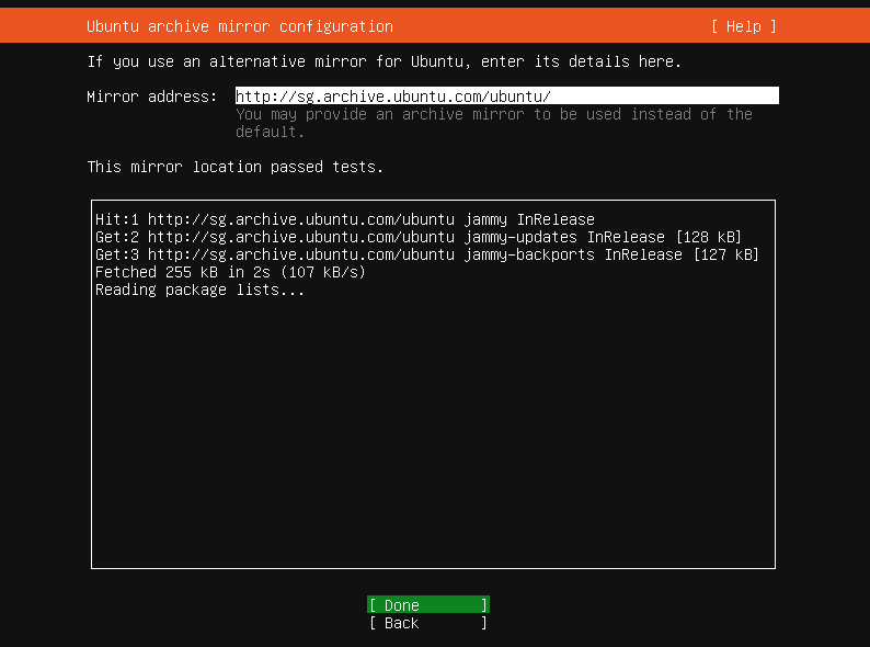 For the mirror, you can wait for the mirror location test passes then press Enter on Done