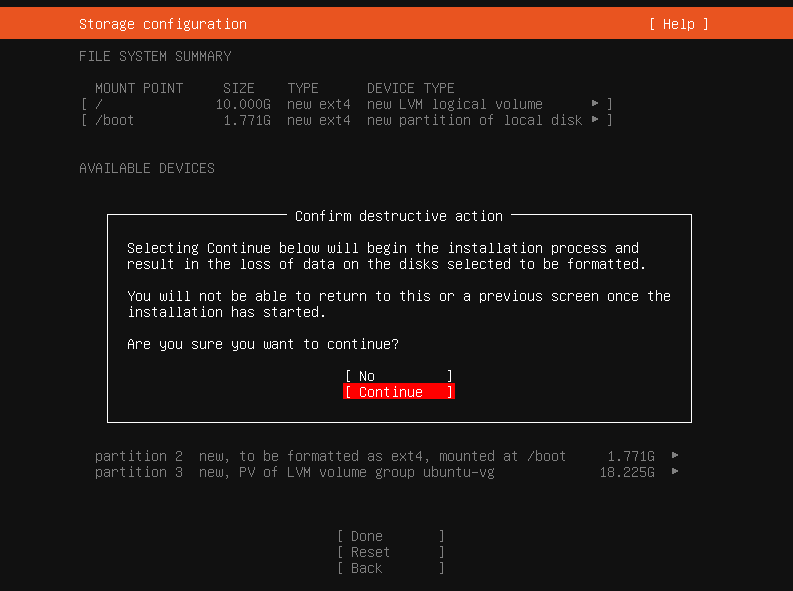 When prompted to confirm destructive action, select Continue.