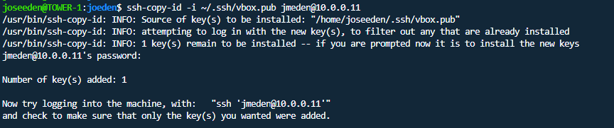 ssh-copy-id -i ~/.ssh/vbox.pub jmeden@10.0.0.11