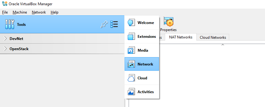 To create the networks, go to Tools → Network → NAT Network.
