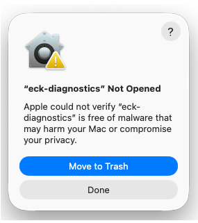 eck-diagnostics is used as an example, but this applies to any non-notarized CLI tool.