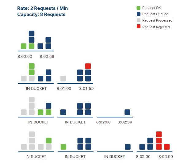 Different algorithms are used to control request limits. Each one handles traffic in a slightly different way.