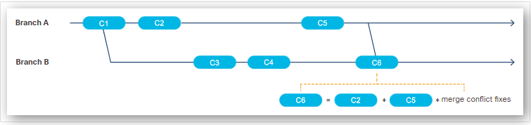 When branches are created, they can diverge as changes are made independently. To combine changes from one branch (source) into another branch (target), you can perform a merge.